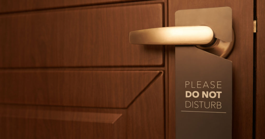 Also, if your hotel room has in-room laundry, avoid doing laundry in the middle of the night if people are sleeping below you. Another consideration with “odd hours” is that many visitors arrive at different times and from different locations. So someone might take a nap at an odd hour to recover from a long day of travel or to help with jet lag.