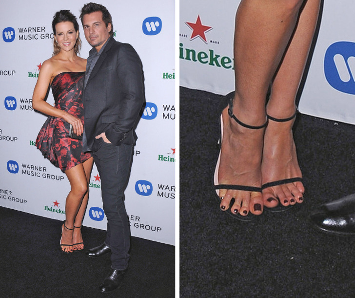 Kate Beckinsale’s sandals were simple, revealing her toes.