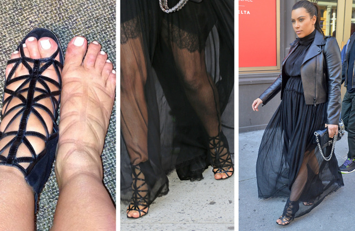 Kim Kardashian’s crisscrossing straps appeared to be preventing her feet from getting enough blood flow. She even posted a picture after taking them off.