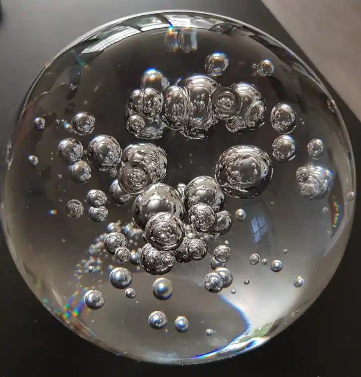 (by u/NightmareResolved) Answer: it resembles a paperweight. When learning to blow glass, it is usually one of the first things a student makes. The glass gathers and folds over itself to form bubbles. Mostly the goal is to avoid bubbles.