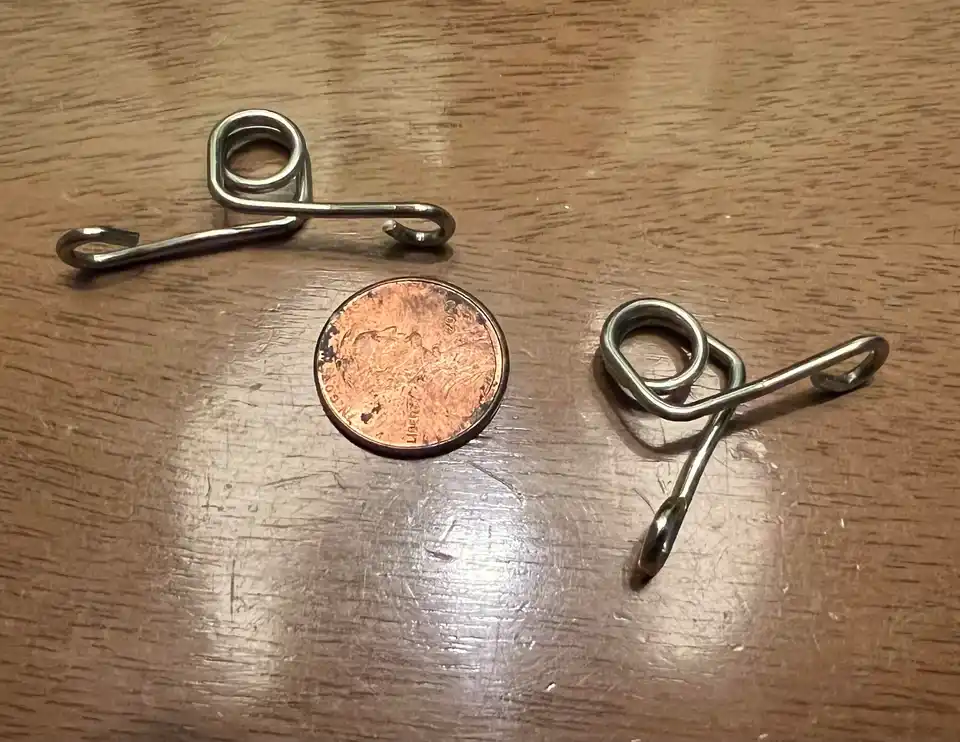 What are the odds of finding springs or clips in a garbage drawer in Ohio? It appears to be made of stainless steel. The image includes Penny for scale. will deform when compressed at the ends as shown in the lower right corner. Maybe I compressed it the wrong way. I’m not sure if I need to save them for any significant purposes.