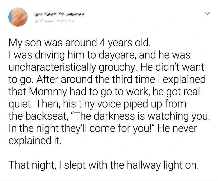 As we delve into these twelve disturbing stories shared by children, we are reminded of the deep and mysterious nature of children’s imaginations. Each story unfolds like a window into a realm where reality and fantasy blur, leaving us both fascinated and troubled by the vibrancy and complexity of young minds. These stories serve as poignant reminders of the mysterious and often incomprehensible experiences that shape the early years of life and make us think about the depths of human consciousness and the untapped reservoirs of imagination that reside in every child. As we go through these disturbing accounts, we are forced to think about the enduring power of storytelling and the profound impact it has in illuminating the hidden corners of the human psyche, especially in the innocent and impressionable minds of children.