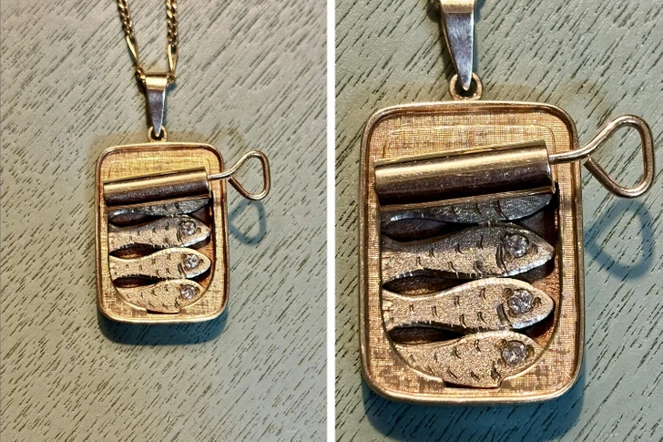 “According to the report provided by my mother, our family recently moved from Pennsylvania to Los Angeles, where my mother was born and spent most of her childhood. During this time, my grandmother expressed a feeling of closure, similar to being packed tightly.” like sardines in a can.” Being a very special person, she personally ordered a pendant made of 14-carat gold and decorated with diamonds in the shape of a sardine. Why not?