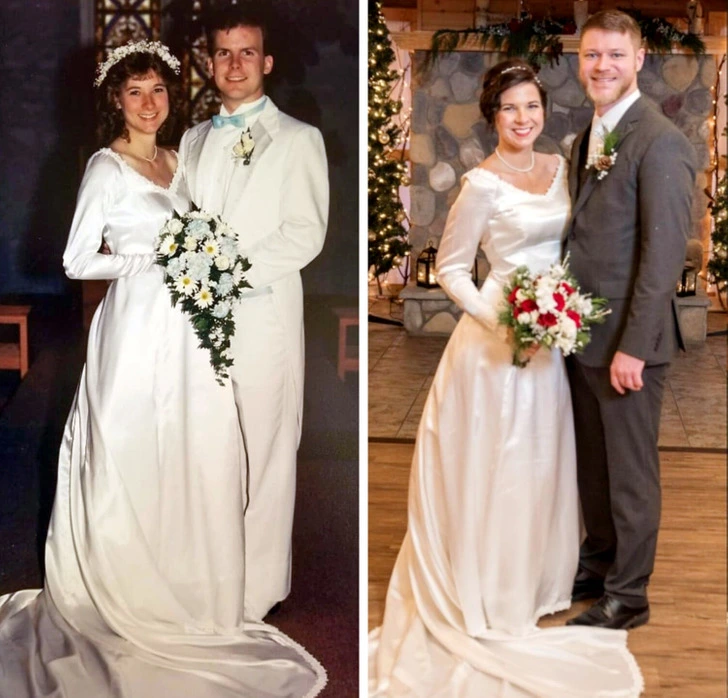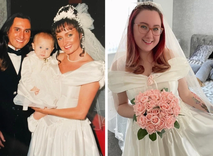 2. “I’m getting married next Saturday and I’ve decided to wear my mother’s wedding dress!” In the first picture, I am also a baby.