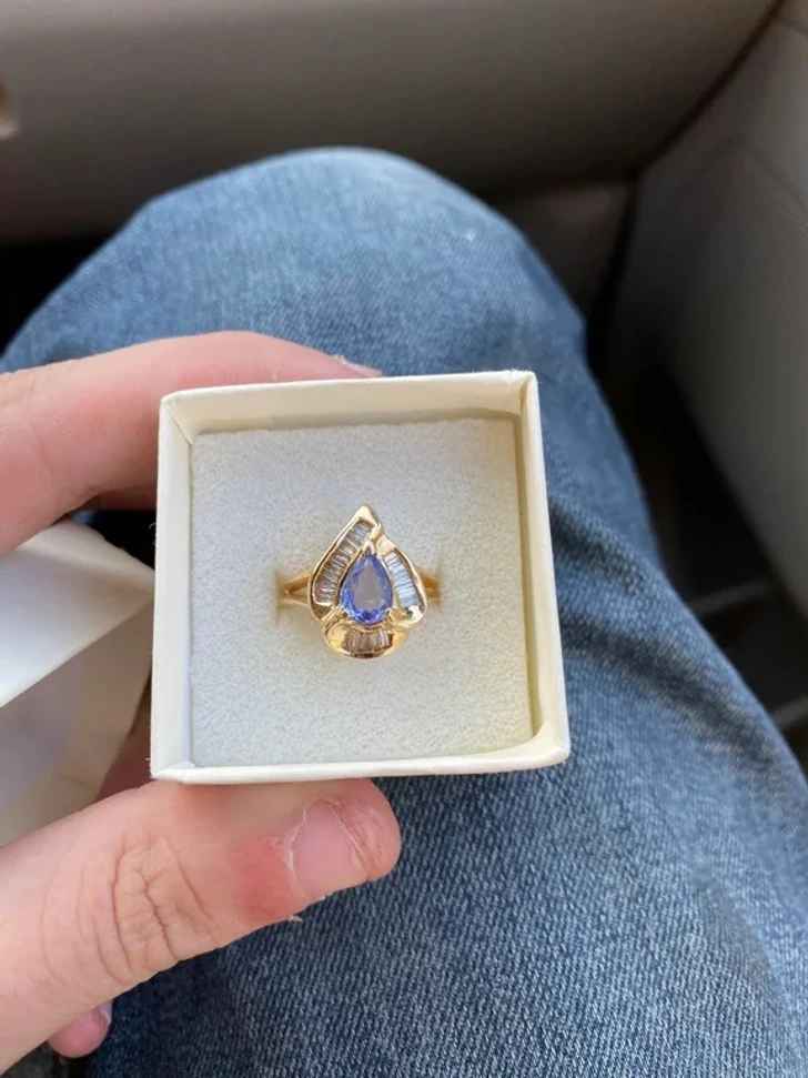6. “This beauty was mixed in with tons of fake gems in a jewelry box. Surrounding the central tanzanite gem are twenty-three genuine baguette diamonds.”