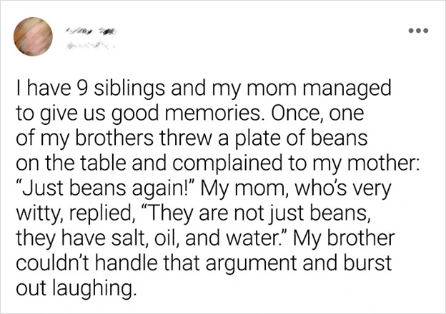 At the point when I was a youngster, my mom cooked a flavorful soup that she at absolutely no point ever constructed in the future. As a grown-up, I asked her for what reason she at no point ever constructed that delightful soup in the future, and with tears in her eyes she admitted that she had nothing for us to eat that day, so she accumulated the extras from everything in the kitchen and that was the outcome. A kiss to every one of the moms who work wonders for their youngsters. © Franklin Fernando/Facebook