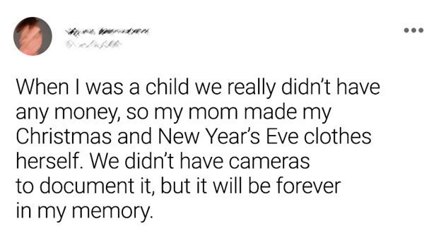 My mom would eat the meat from the spine of the chicken, and I was unable to figure out why. She would likewise bring us snacks from her work that we as a whole cherished, while she didn’t appear to like them by any means. © Lilia Betancourt Guilian/Facebook