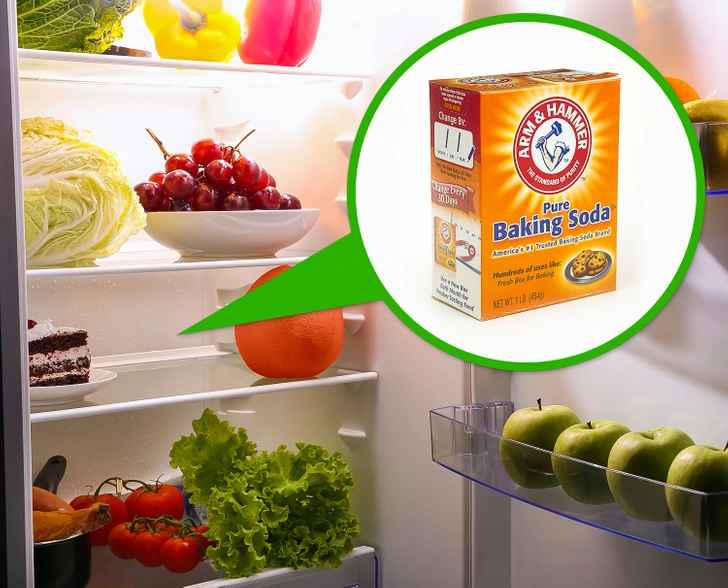 2. Use baking soda to get rid of fridge odors.