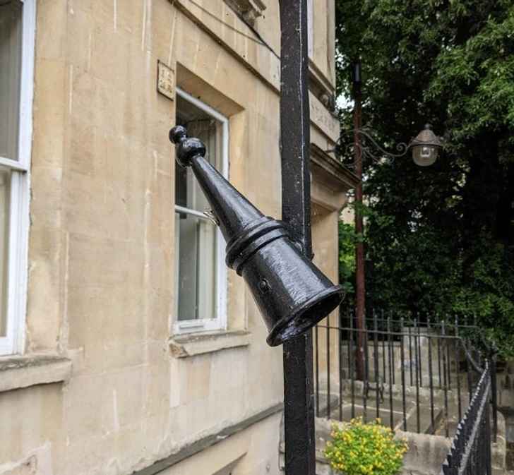 1. “An iron cone on either side of a gate placed outside a building in England.”