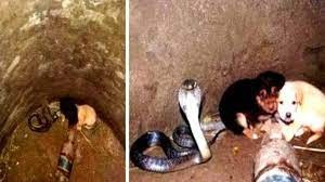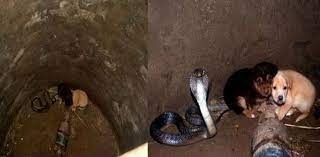 For 48 hours the little dogs remained in a similar spot of the well along with the cobra.
