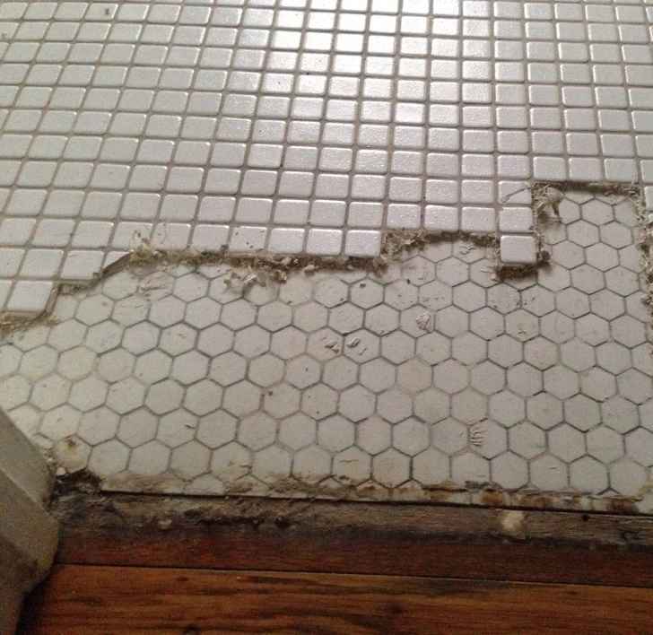 7. “My wife and I wanted to update the hexagon tiles in our 1920s bathroom to a more modern style. After an hour, I spotted it.”