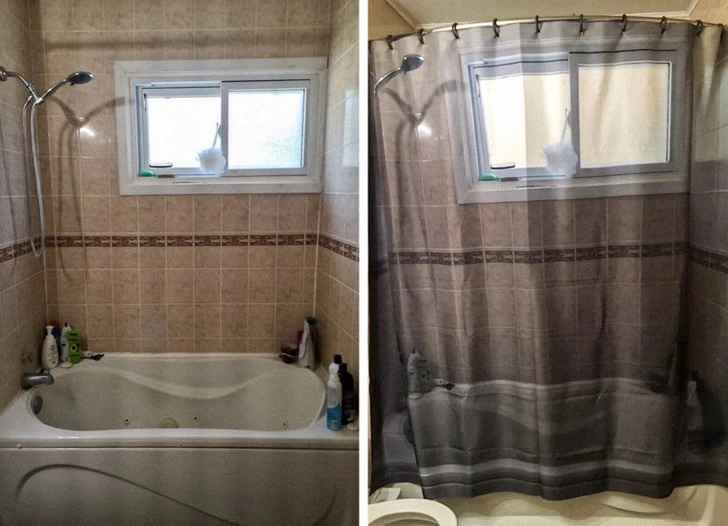 9. “My husband and I discovered that you can get photo shower curtains.”