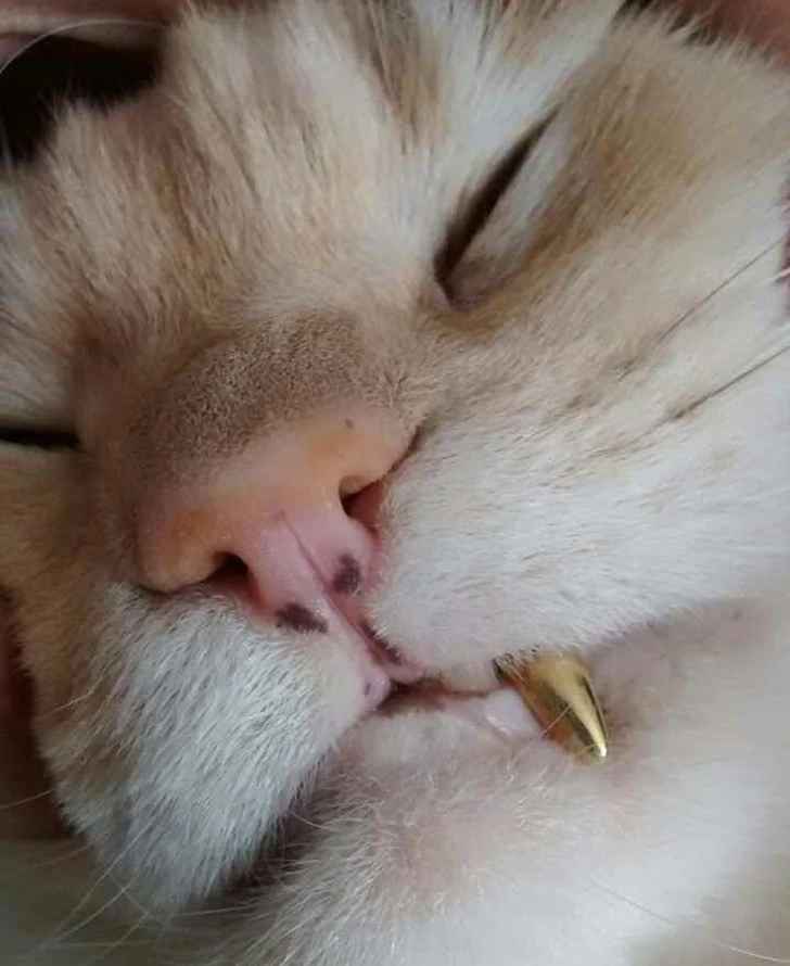 20. “This little kitten’s teeth broke. So the dentist who owned her put in a gold tooth.”