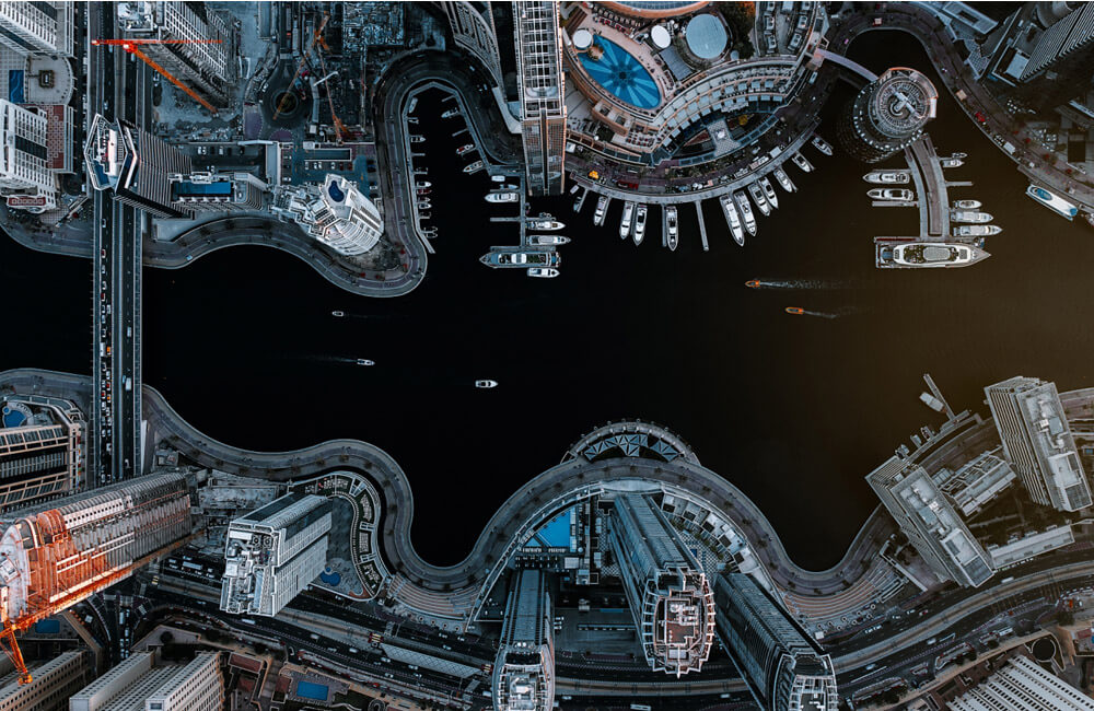 “Dubai Marina” by Carmine Chiriaco is an aerial shot of the jetty at Dubai Marina, contrasting with the surrounding ocean. This image offers a new perspective on an area visited by thousands of people every day, showcasing the architectural wonders of Dubai’s buildings from an aerial perspective.