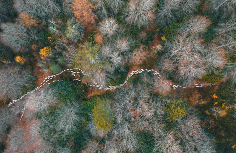 In 2020 Mark Carwardine entered the Siena Drone Photo Awards with “Munk’s Mobula Rays Schooling”. This amazing image shows a rare phenomenon: a school of devil rays. Usually found in coastal or tropical areas, these rays gather. British naturalist Mark Carwardine, who is famous for his BBC show “Last Chance to See”, caught this incredible incident on camera.