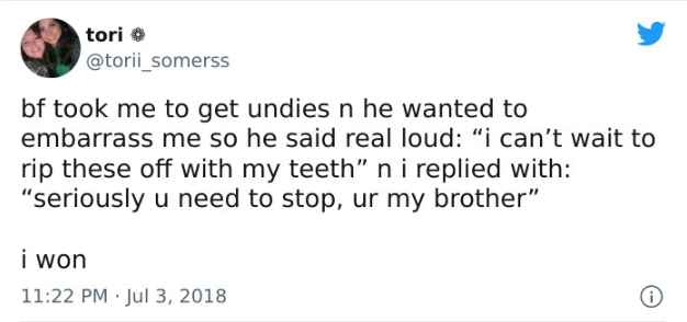 At this point in the relationship, all is fair when it comes to embarrassing each other. Clothing store employees have probably heard strange things from customers in the past.