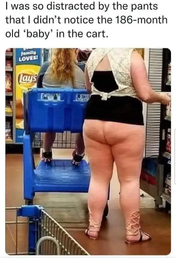 I missed the 186-month-old “baby” in the stroller because I was preoccupied with jeans.
