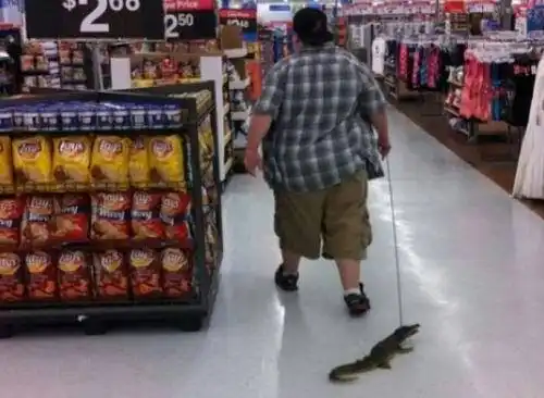 You’re in Florida, my friend when you witness an alligator being dragged on a leash at Walmart. The New Testament version of paradise.