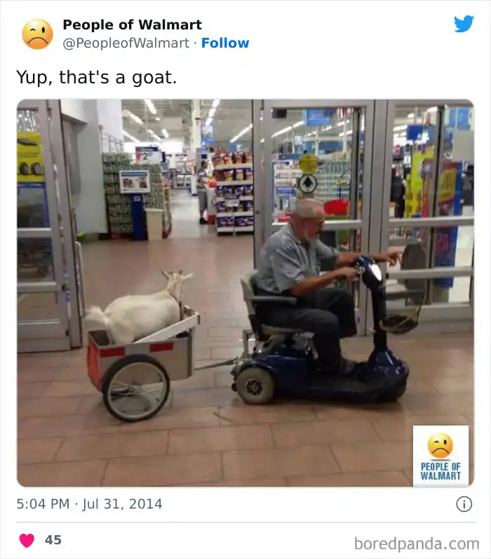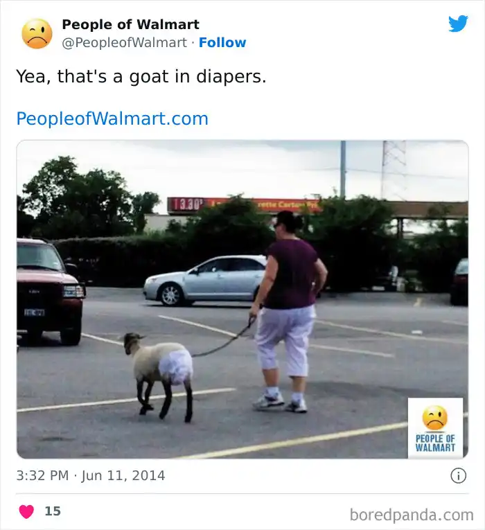 People often take their goats to Walmart. Furthermore, this time the goat is dressed in a diaper.