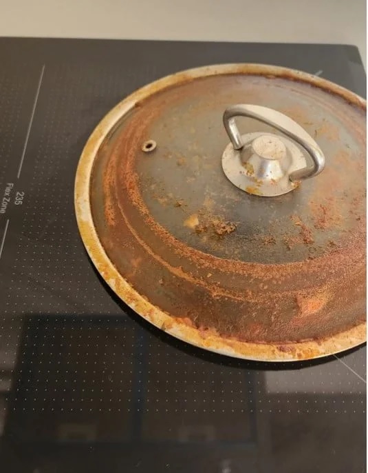 6. Putting a hot cover face down on a glass burner