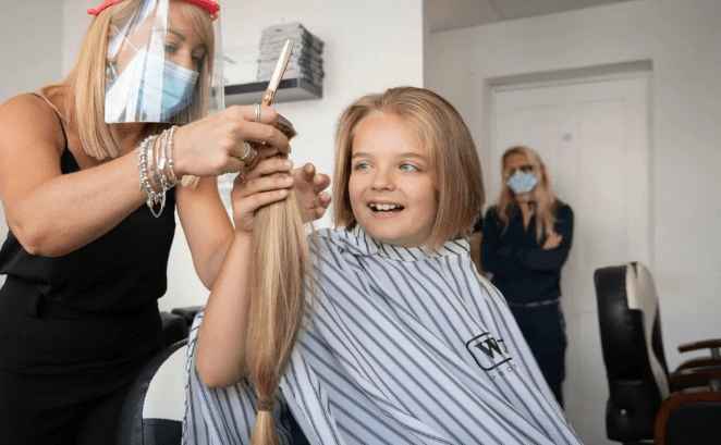 Daisy tried for a long time to get her son to cut his hair, but he was adamantly against it. However, he finally decided to stop. His hair was expertly cut by barbers and he donated his long hair to make wigs for young cancer patients.