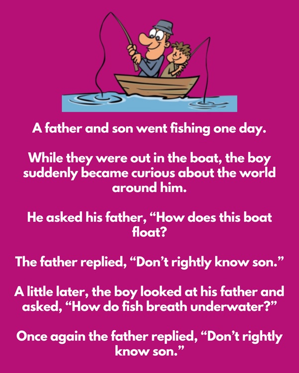 A little later, the kid saw his dad and inquired, “How truly do fish breath submerged?”