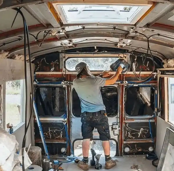 The Dix family decided to restore a third car to go on even more trips after their conversion proved successful. They therefore decided to sell their precious bus. Sam has renovated the interior and rearranged it so it’s perfect for another person or a couple who are ready to go their own way.