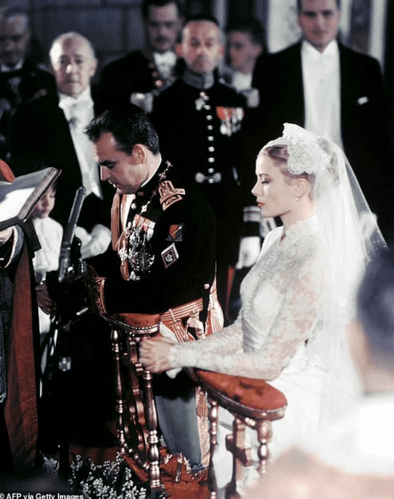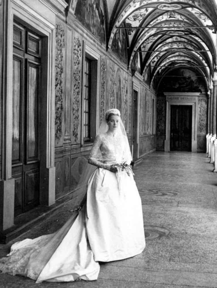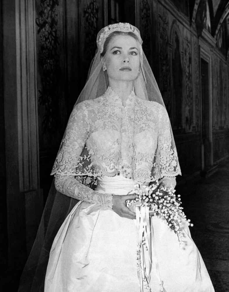 An estimated 30 million people watched the holy rite, which was officiated by the Bishop of Monaco, Gilles Barthe, on international television. One of the two wedding dresses Grace Kelly wore was a gorgeous piece that took an amazing three weeks to make.