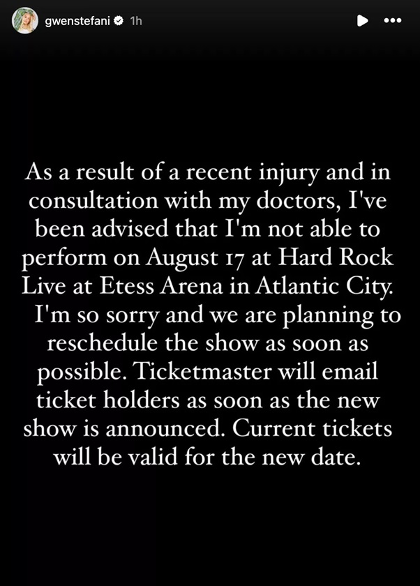 Stefani apologized and said, “We will reschedule the show quickly.” She additionally referenced that Ticketmaster would convey messages to ticket holders “when the new show is reported.” The “current tickets,” as indicated by her, would be “legitimate for the new date.”