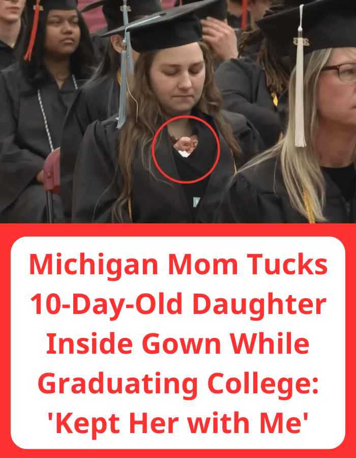Embracing her newborn daughter in a frilly dress, the new mother proudly attended the graduation ceremony.