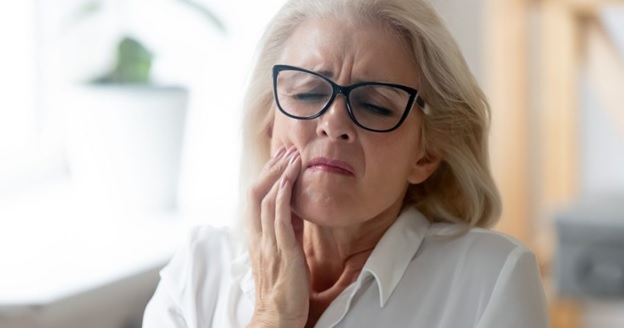 Hurt senior female laborer in glasses feel focused on experiencing serious toothache at working environment, despondent matured lady representative in glasses feel terrible focused on having teeth torment, need dental treatment