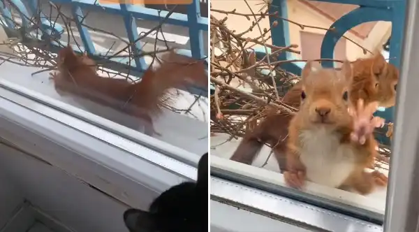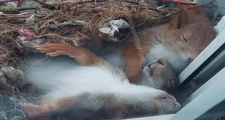 She hadn’t seen the adorable critters building their nest here because the curtain in the room had been drawn for the previous few weeks. She quickly reasoned, “I have to get it on camera.” She immediately grabbed her camera and started taking pictures of the adorable squirrels. She was in awe of her luck.