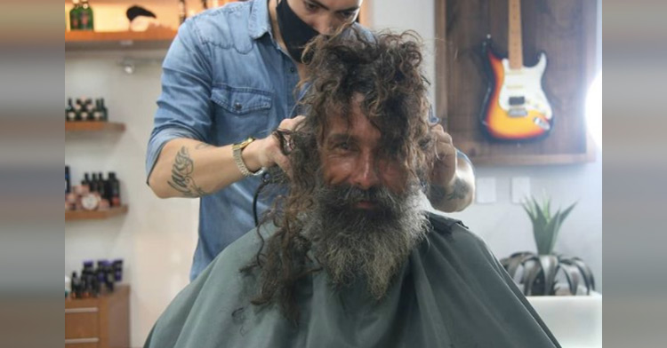 After three years of living on the streets of GoiÃenia, Brazil, João Coelho Guimarães walked into a barber shop and asked for a razor to cut his beard. Since João needed more than just a beard trim, the barbers went above and beyond to give him a full trim.