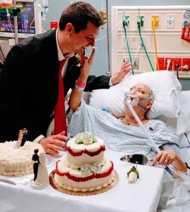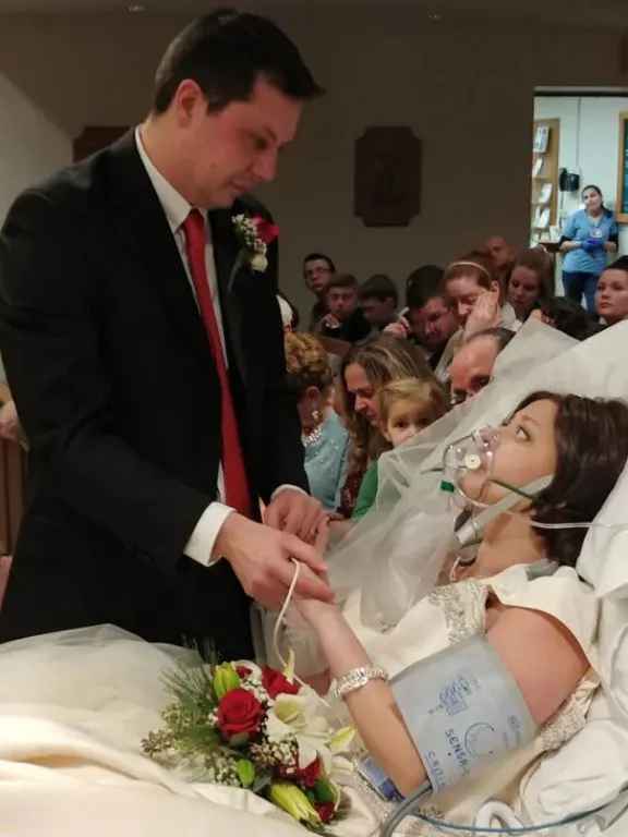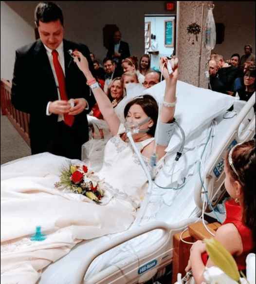 But the time finally came on December 22, more than a year after Dave proposed. With family and friends present, the beautiful wedding was staged while Heather was in hospital.
