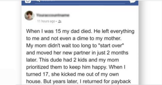 “After two months, my mom (45) moved in with her new partner and didn’t wait long to ‘start over,'” the man said on Reddit as he shared his revenge story.