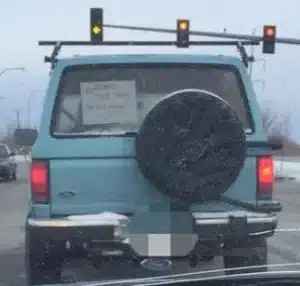 An Annoyed Mother Encounters Slow-Moving Vehicle, Captures Photo of Sign on Their Rear Window