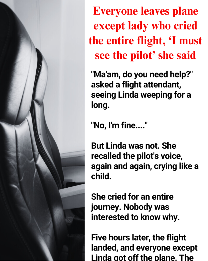 As the plane took off, she noticed the pilot greeting the passengers warmly. Linda’s eyes filled with tears as she immediately recognized a voice she knew well. Currently, the individuals sitting near her were quite worried.