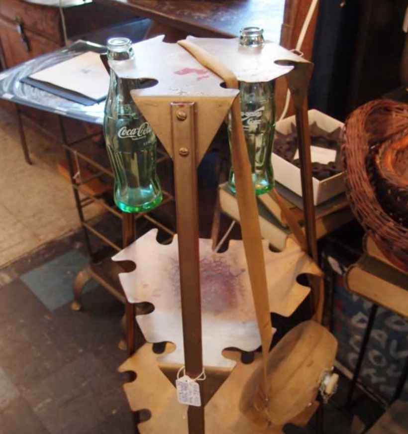 This rack was designed as a soda bottle rack, but not just any soda bottle rack. It was specially created by Nehi for their soda bottles as part of their marketing strategies. The triangular shape and notches were ideal for holding bottles with their comfortable neck. During the Depression, you could find these racks in corner stores and grocery stores. They were quite a sight!
