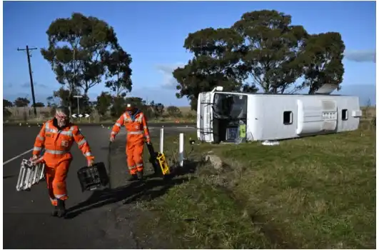 According to Victoria Police Superintendent Michael Cruse, the truck hit the bus from behind as it turned right onto Murphys Rd. in the direction of the west.