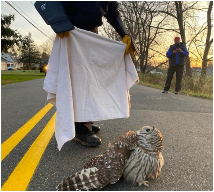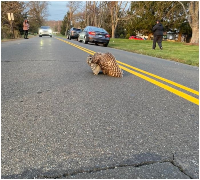 Residents of Branford, Connecticut realized the owl needed help because it wouldn’t budge from the middle of the road.