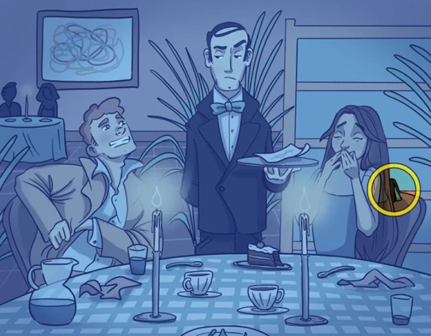 Initially planned as a youngsters’ riddle, the picture portrays an eatery scene with a missing wallet difficulty.