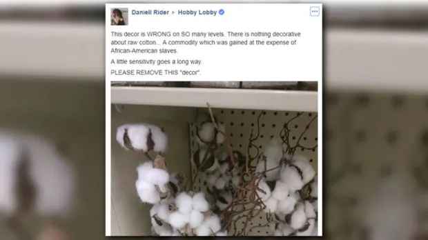 According to Rider: “This decor is BAD on SO many levels.” “Raw cotton is not a decorative material…a good or service obtained at the expense of African-Americans working as slaves. The sensitivity should be used sparingly. I ASK YOU TO REMOVE THIS ‘decor’.”
