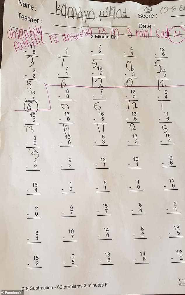 “My son, Kamdyn’s teacher, has been so rude to him and me all year. For someone to write this on a child’s homework when he brings it home makes me really angry. Such amazing motivation,” he wrote under the picture.