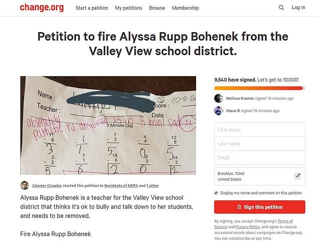 To prevent the teacher from abusing her authority over any other minor sophomores because he didn’t want her to get away with the crime against his child, Piland started an online petition in hopes of getting the instructor fired.