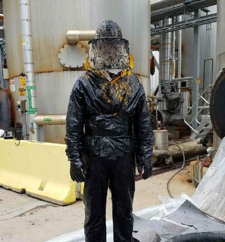 “I had to explode an asphalt tank a while ago. My rain gear was bright yellow.”