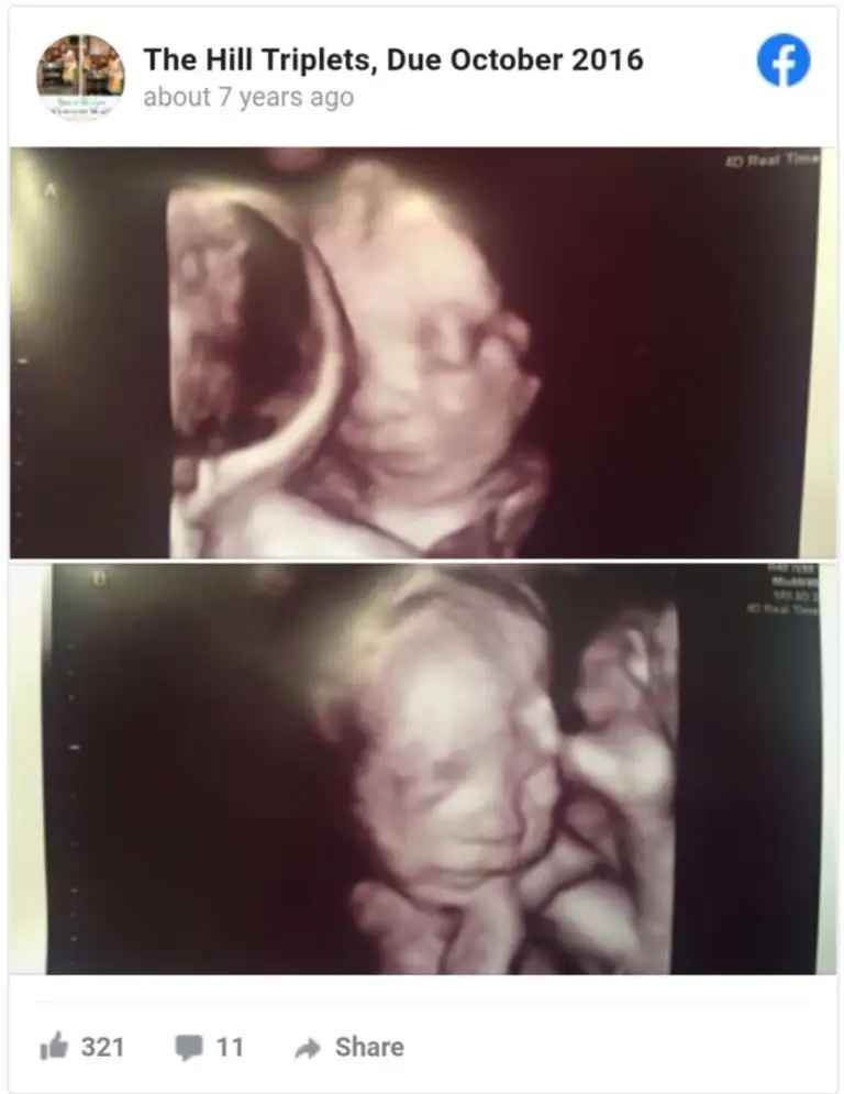 She was shocked and amazed when the ultrasound revealed that there were two boys and one girl.