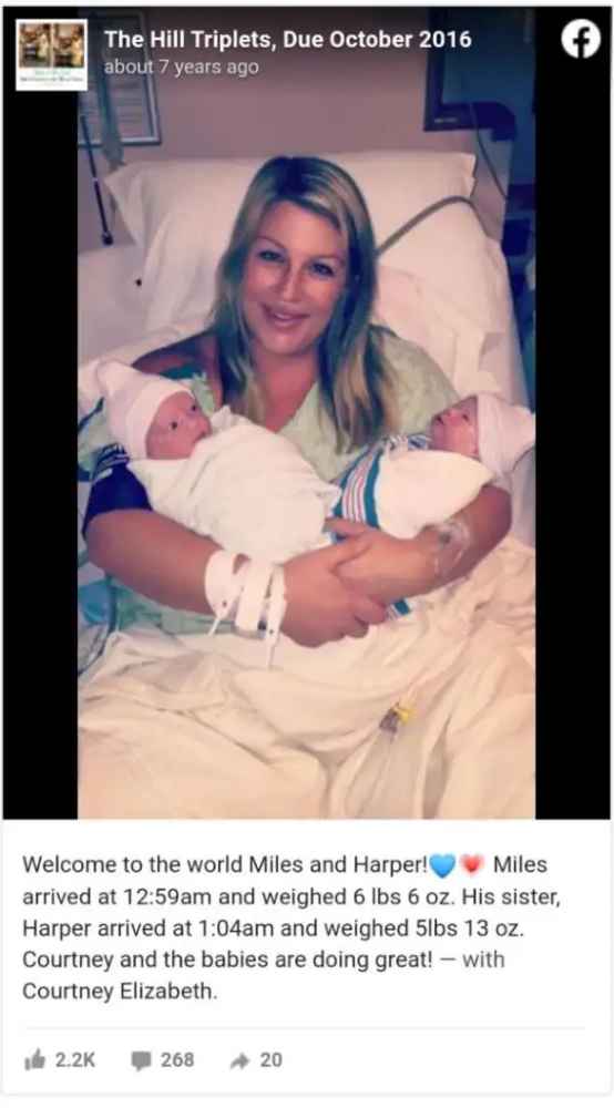 Fortunately, the other two babies, Miles and Harper, were delivered safely.