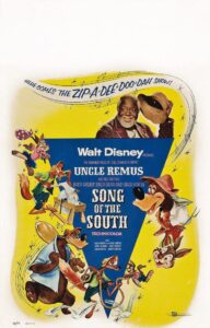 Br’er Rabbit, Br’er Fox, Br’er Bear, Br’er Fox, Br’er Rabbit, Br’er Fox, Br’er Bear in a 1956 Song of the South poster, top: James Baskett.