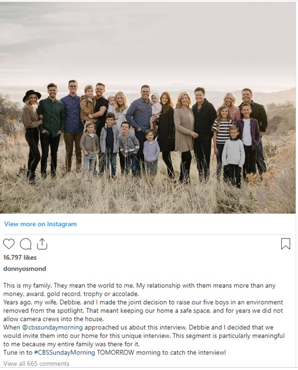 Wear, Jeremy, Brandon, Christopher, and Joshua Osmond are the five children of Donny Osmond. They are all now adults with their own families. Also, Osmond appreciates just investing energy with his loved ones.