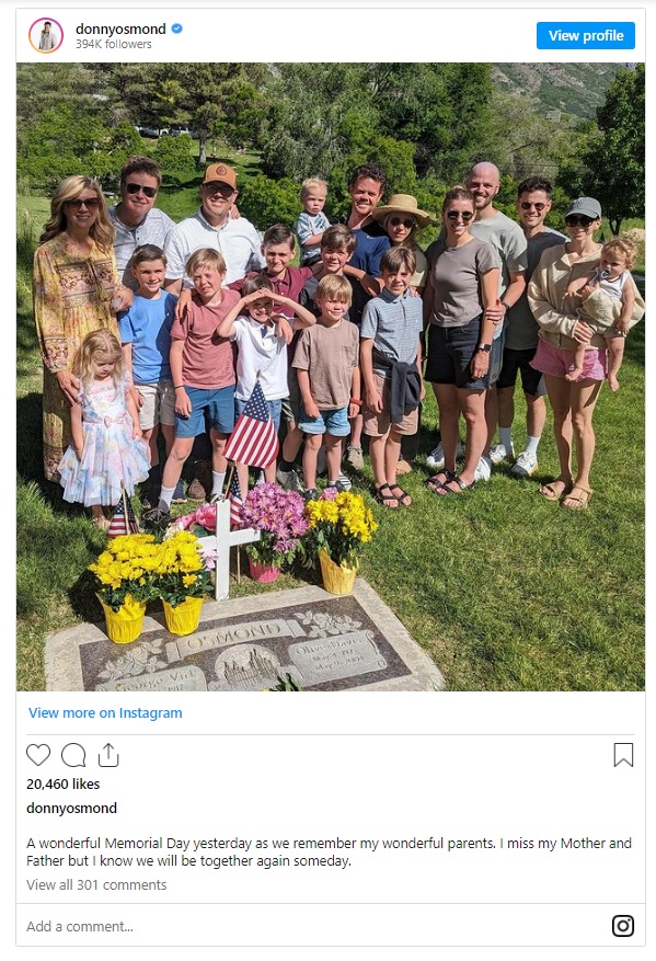 It is so good to see the whole Osmond tribe join as they visit their cherished relatives who have passed on.